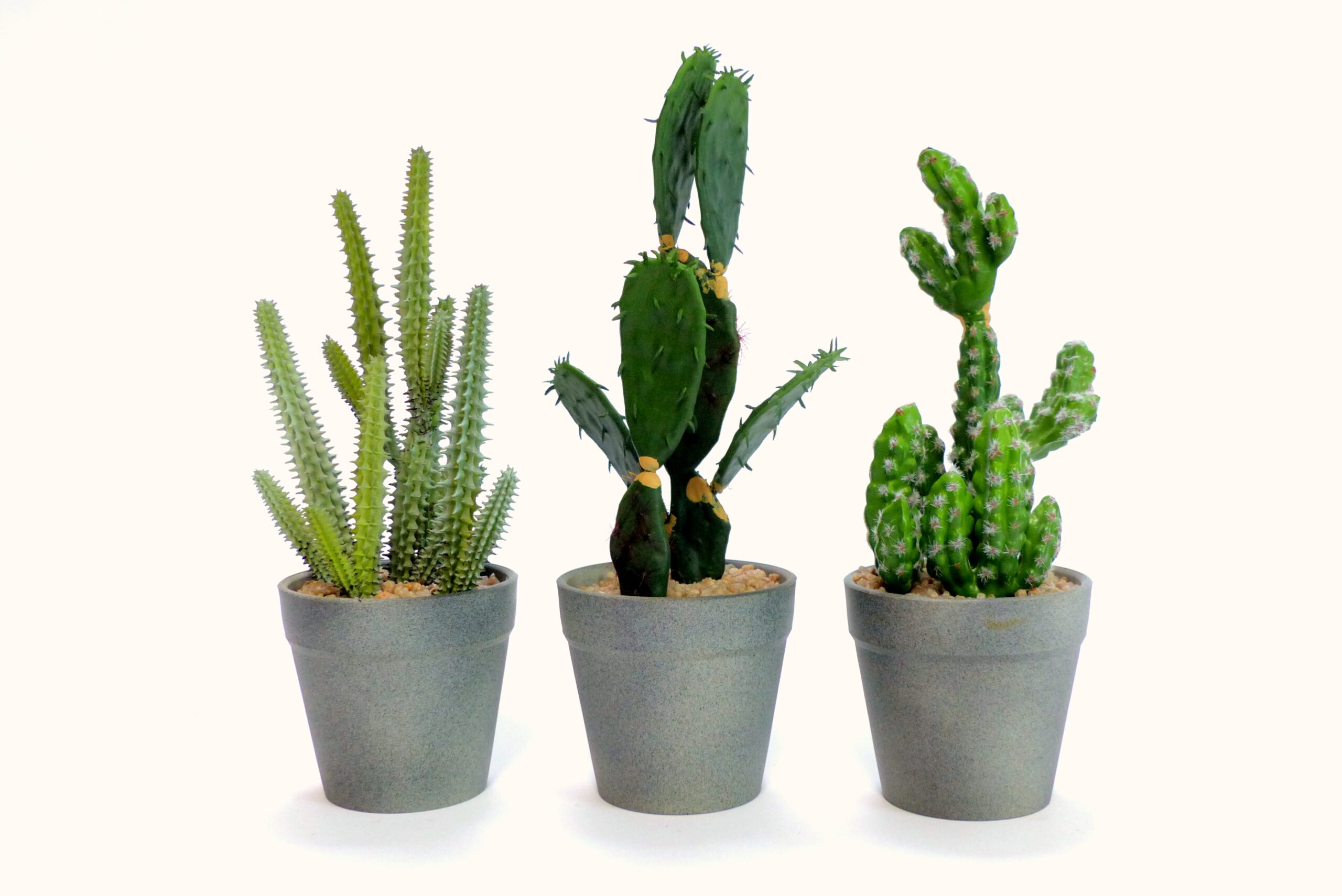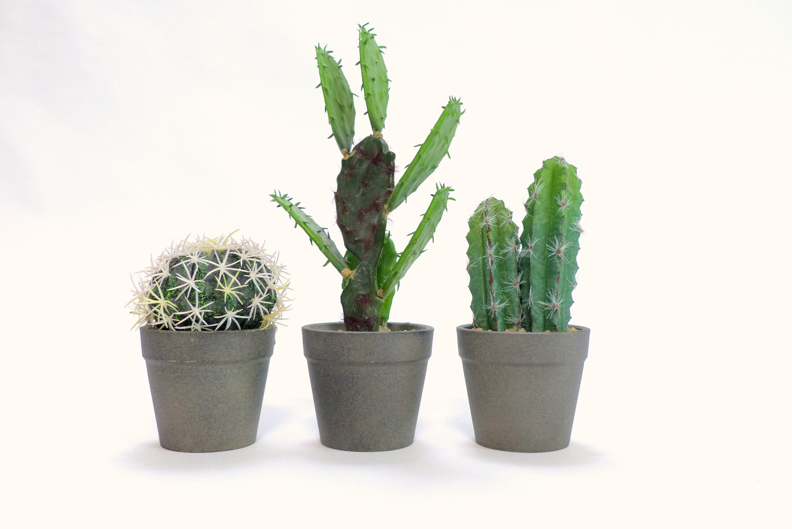 Künstliche Kakteen in verschiedenen Varianten – von Kugelkaktus bis Opuntie. Pflegefrei und vielseitig einsetzbar für mediterrane und Wüsten-Themen.